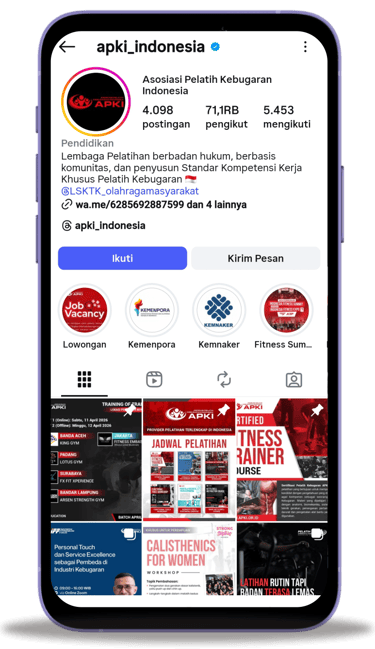 Promosi pada media sosial Instagram @APKI_Indonesia dan @IndonesiaFitnessExpo.